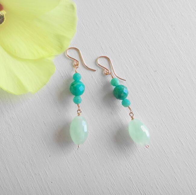 柔らかなグリーンの大粒プレナイトにグラデーションのアマゾナイトを