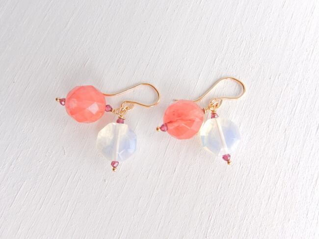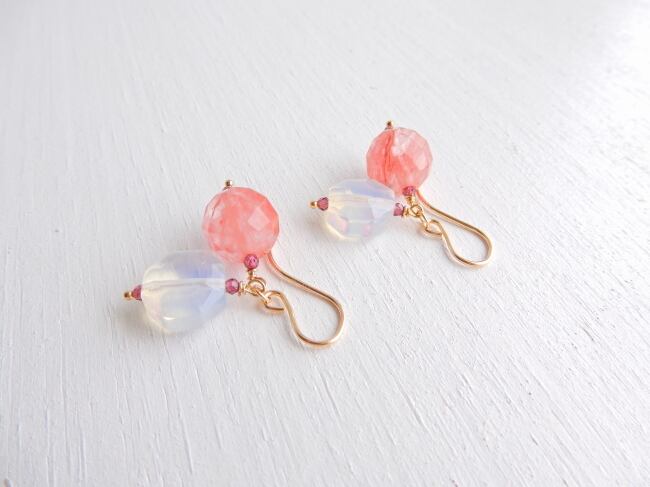 フック下1.5cm チェリークオーツ10mm シンセティックオパール10mm