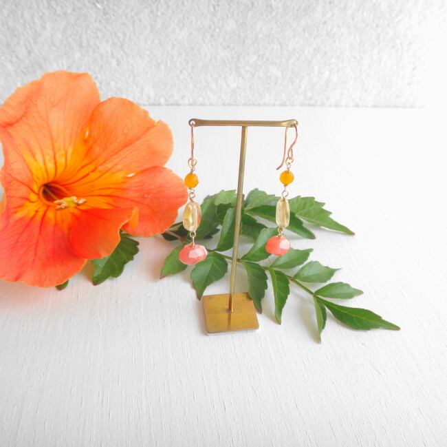 シトリン、イエロージェイドを合わせたビタミンカラーのピアスです。