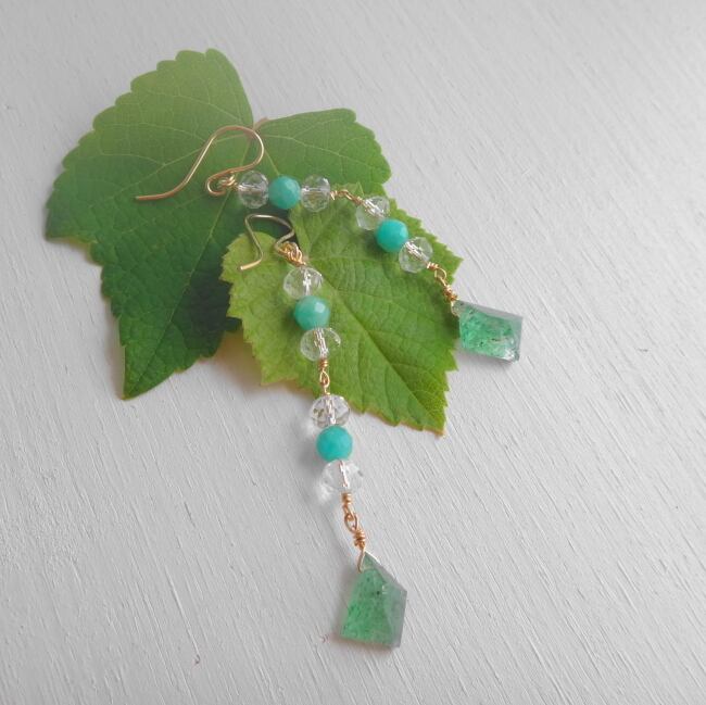 透明感抜群のクリスタルクオーツにグリーンアベンチュリン、アマゾナイトを合わせた