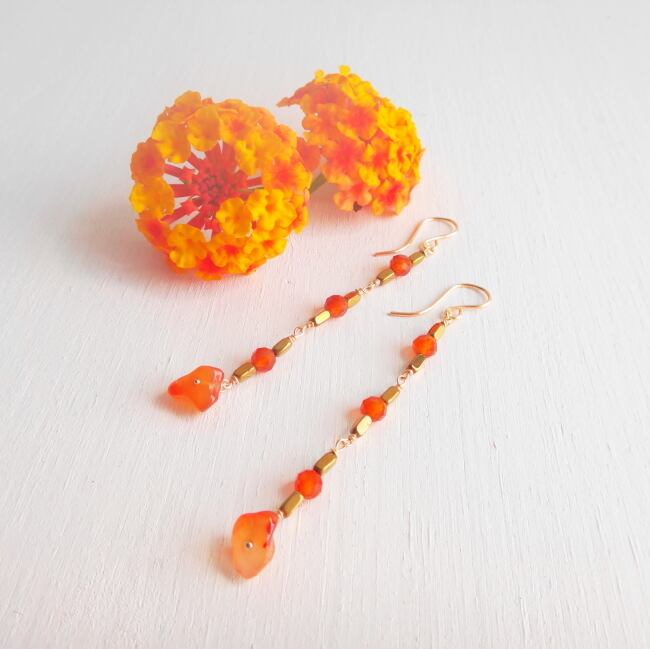 カーネリアンとヘマタイトをシンプルに繋いだスマートな揺れるピアスです。