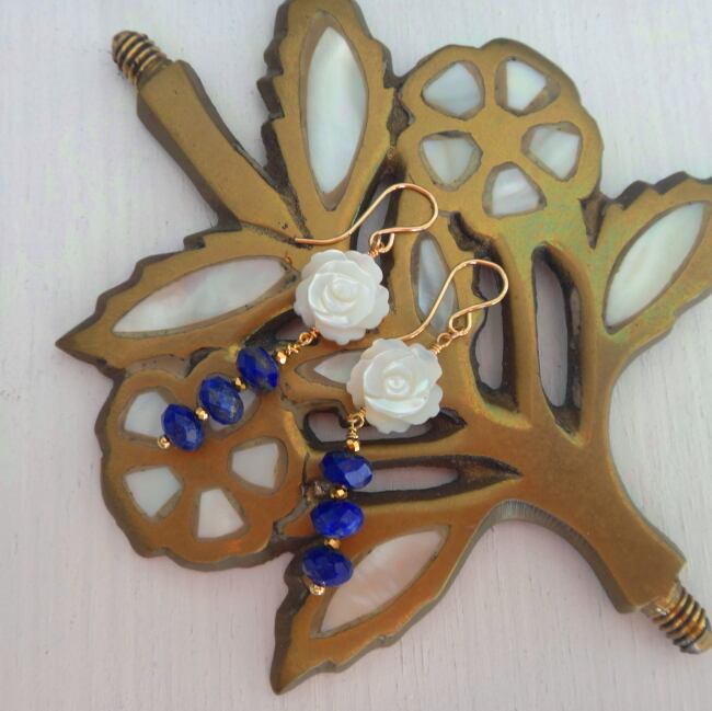 カットが美しく深いブルーが印象的なラピスラズリにマザーオブパールを合わせた