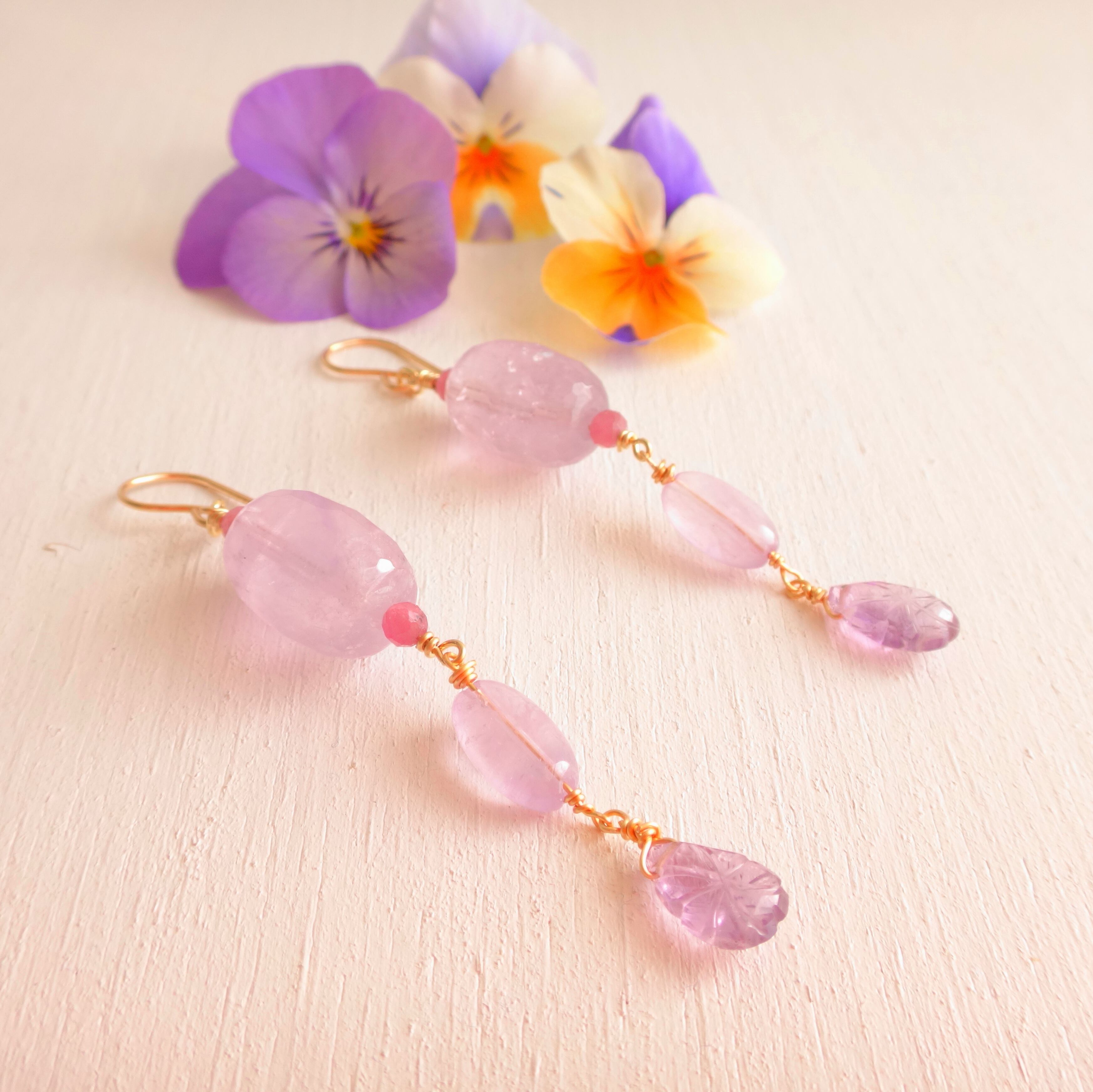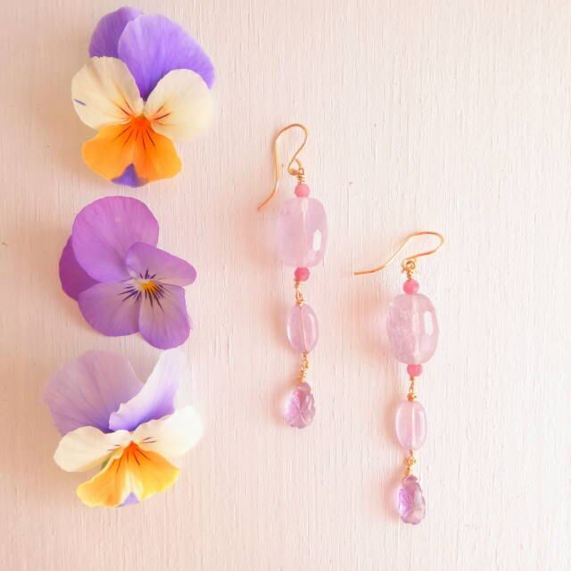 それぞれの雰囲気を持つアメジスト3つにピンクトルマリンを添えて